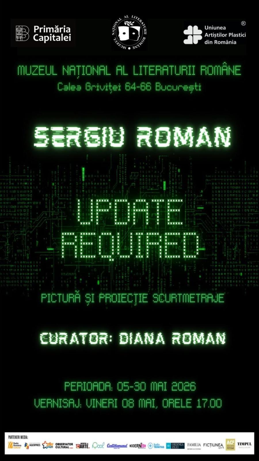 Muzeul Național al Literaturii Române organizează, în perioada 05–30 mai 2026, expoziția personală a artistului Sergiu Roman, intitulată Update Required (sala „Al. Condescu”), un proiect care reunește pictură și scurtmetraje într-un demers vizual contemporan. Vernisajul va avea loc vineri, 8 mai 2026, ora 17:00.