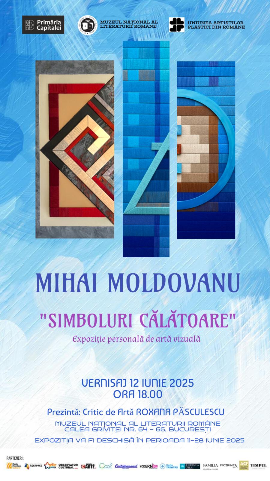 Muzeul Național al Literaturii Române vă invită joi, 12 iunie 2025, ora 18.00, la sediul său din Calea Griviței 64-66, sala „P. Creția”, la vernisajul expoziției de artă vizuală a lui Mihai Moldovanu, intitulată „Simboluri călătoare”, care va fi prezentată de dr. Roxana Păsculescu, critic și istoric de artă.