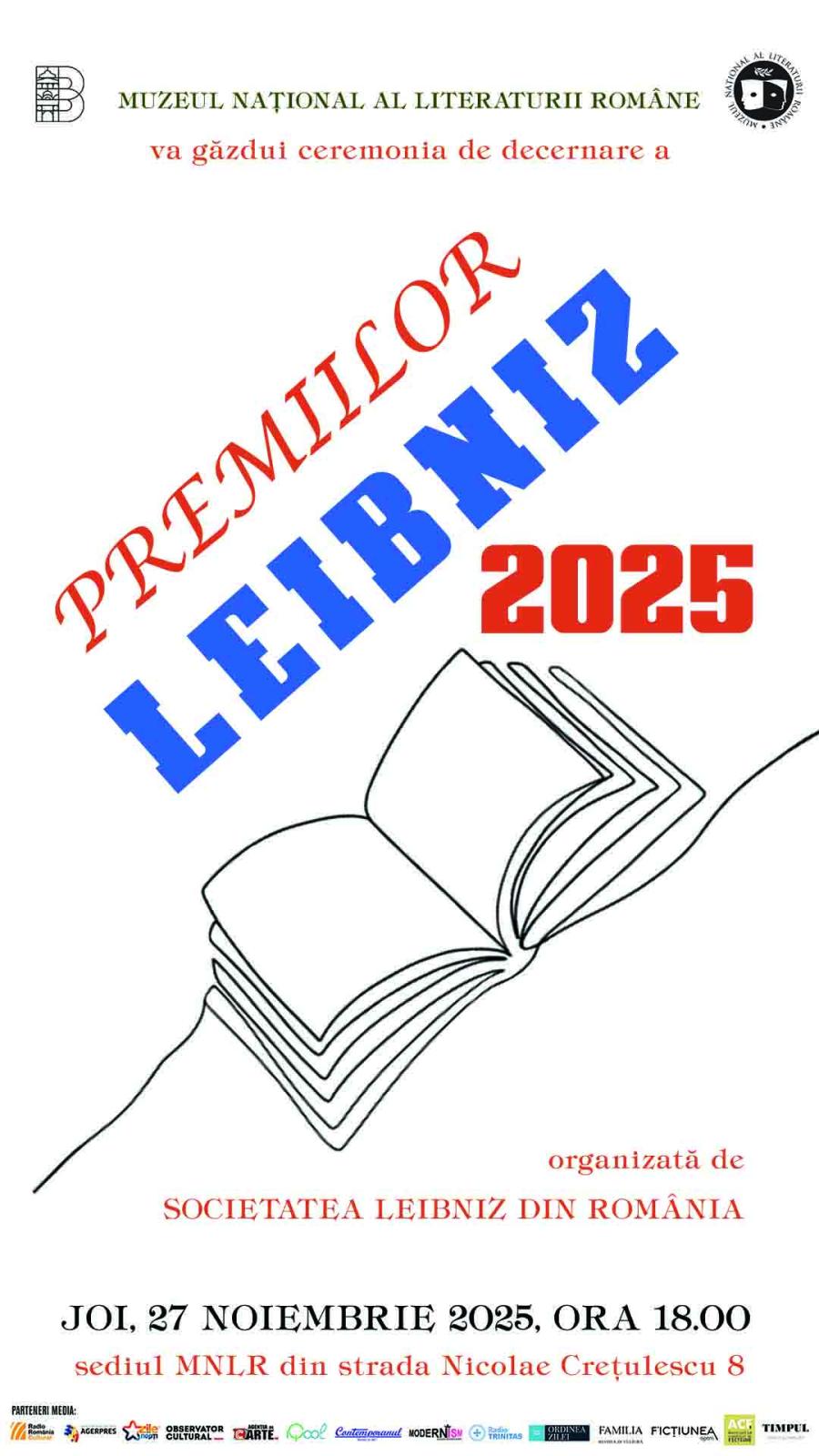 Muzeul Național al Literaturii Române din București va găzdui joi, 27 noiembrie 2025, de la ora 18.00, Gala Premiilor Leibniz, organizată de Asociația Societatea Leibniz din România.